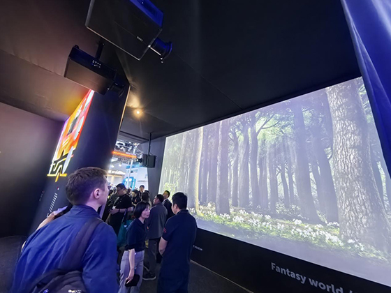 展会上,科视、巴可等海外品牌持续跟进,以强大的技术力驱动创新场景、深度沉浸的案例落地。科视Sapphire4K40-RGBH旗舰机以4万流明亮度、DCI-P3广色域,打造3D沉浸空间。现场以沉浸式3D体验与高亮光影秀,展现品牌在复杂光环境下的色彩控制力与多机协同能力,重申其在高端工程与大型活动领域的技术领跑地位。