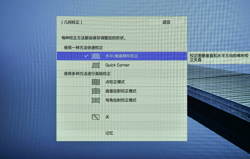 它的几何校正不仅包括基础的水平/垂直梯形校正,还支持可独立调整画面四个角的位置的四角校正,通过调整画面上的多个控制点来匹配不规则表面的点校正,以及使画面完美贴合弧形或不规则角度的曲面校正和弯角矫正。
