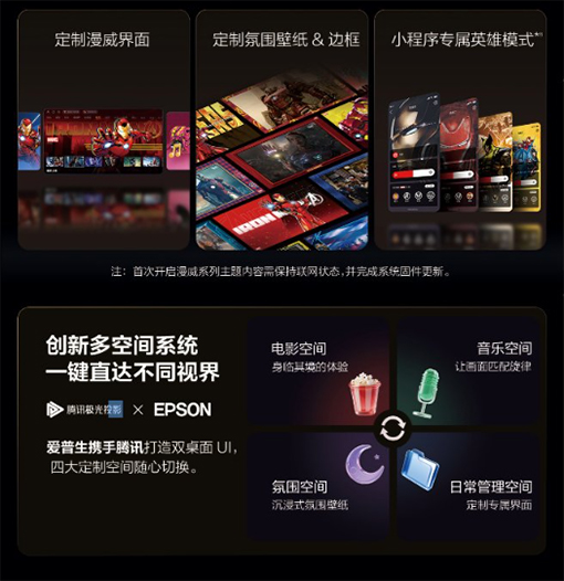 在满足日常所需之外,EF-53更懂得如何为独特的个人品味注入专属的乐趣。EF-53与漫威合作,打造了全方位沉浸式主题体验——从开机界面、氛围壁纸、边框设计、氛围灯,到小程序专属英雄模式*8,每一个细节都融入了漫威元素,让热爱触手可及。同时,EF-53携手腾讯视频·极光TV打造了双桌面UI,影视、音乐、氛围和日常管理四大定制空间,一键直达,无论是独自沉浸或家庭共享,都能轻松开启属于个人的娱乐时刻。