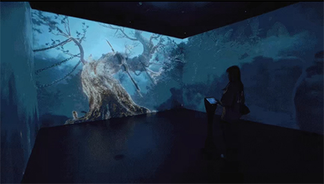 【光影空间·恋恋仙侠】展区通过多形态光影场景,还原剧中的奇幻与壮阔。爱普生针对不同场景灵活部署:在“光影飘纱”区域,2台6000流明*1*2CB-L695SE投影机利用纱幕透光性投射出如梦似幻的仙侠意境;在“灵决交织”区域,4台6000流明*1*2CB-L695SE投影机打造的交互空间让光影随游客动作实时变化,实现人与画面的灵动“对话”;而在“穹影幻境”5台10000*1*2流明CB-C15KU投影机则挑战高难度穹顶投影,超高清画质与高亮度输出确保360°无死角,让观众仿佛置身于仙侠世界的穹顶之下,仿佛真正踏入波澜壮阔的仙侠世界。