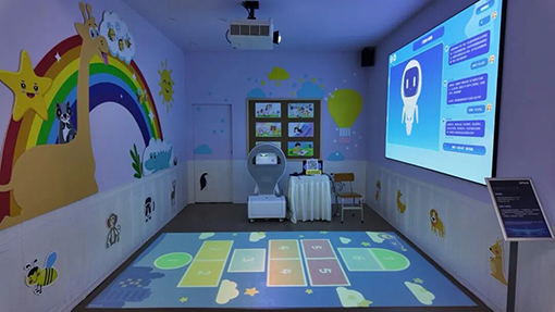 K12体适能素质教育场景——AI趣味体适能方案:打破空间局限,无需前往操场,学生利用课间时间在室内即可开启趣味锻炼。方案融合高亮激光投影机以真实超高亮度输出确保明亮环境下画面依然清晰可见。搭载巧智绘AI小智一体机*3,轻松打造不受天气与场地限制的沉浸式运动空间。随着AI技术的发展,运动内容还可按需定制、灵活更新,并以互动引导、趣味闯关等形式激发学生运动兴趣。