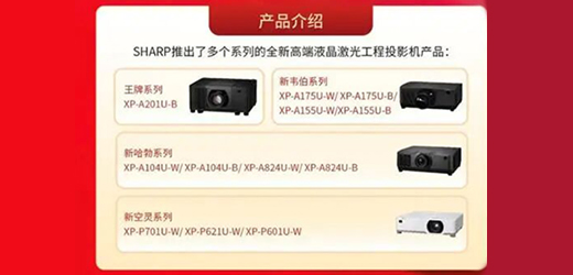 SHARP再度发力,重磅推出全新一代高端液晶激光工程投影机产品线。涵盖王牌、新韦伯、新哈勃及新空灵等多个系列…