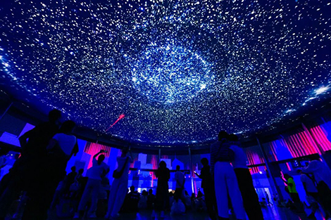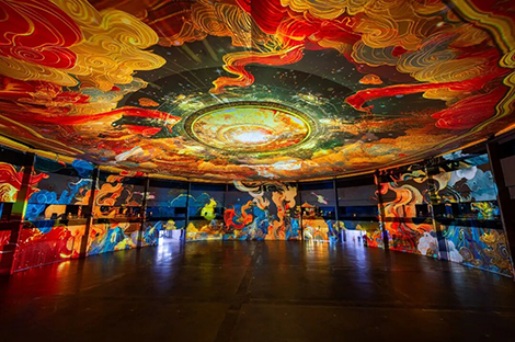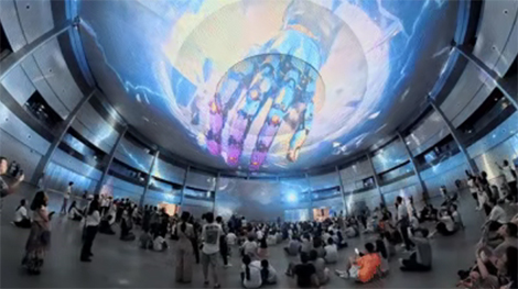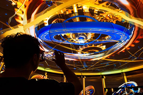 360°沉浸式包裹感的影像铺满整个穹顶空间,视线所及皆是流动的光影,观众仿佛被吞入一个巨大的全息空间,现实世界的边界瞬间溶解。观众站在穹顶之下,投影从四面八方涌来,人成了漂浮在光影宇宙中的一粒微尘。