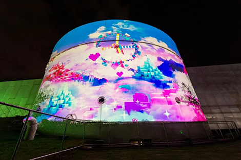 油罐艺术中心作为曾经城市工业历史的遗存,在光影节期间也披上了光影的外衣。