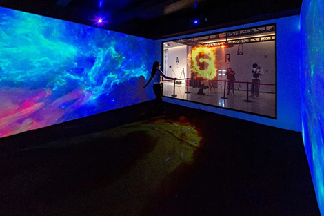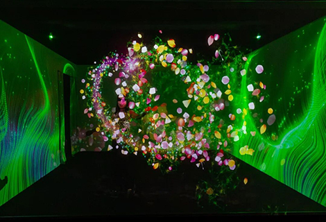 其中的《舞影随行》展项使用全息舞台投影、体感高速追踪两种技术,创造出灵动奇幻的氛围。真·人与光影同台演出,影像与人的动作无延迟互动,不停律动变幻,虚实叠加,既有写实,也有写意,尽显艺术与科技融合的魅力。松下独有的高速实时追踪投影技术,是实现人与光影实时互动的关键。配合高速追踪投影,还构建了沉浸式CAVE空间,使人置身于光影之中,让人直接成为塑造光影故事的核心要素,营造“人动光随”的创意体验。