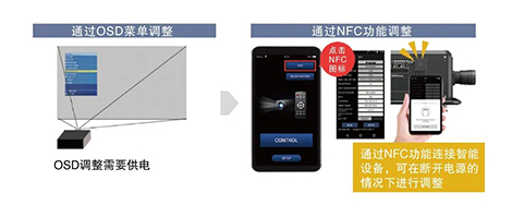 使用手机,最多可以对64台投影机进行开机、关机、输入选择、设置调整、镜头调整等操作,在最远30米的距离进行自动聚焦。