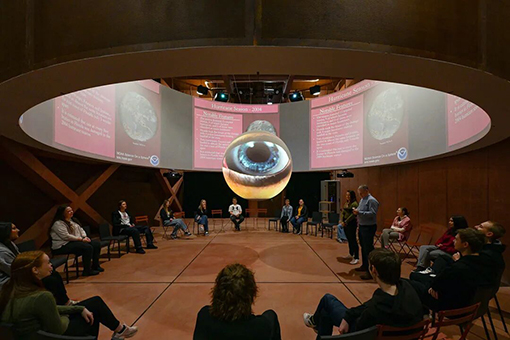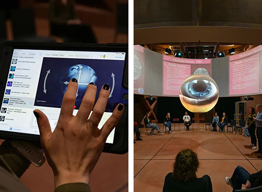 另一大难点在于实现球体投影与外围的环幕投影画面的精准同步。该项目由获得美国国家海洋和大气管理局(NOAA)"科学球体"(Science