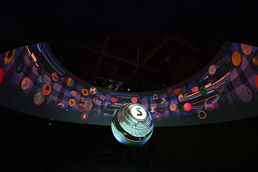 球体部分使用四台松下DLP激光投影机PT-FRZ580C(中国型号),环幕的360°投影则通过八台松下DLP激光投影机PT-FRZ69C投影机实现。整套系统由独立服务器驱动,并搭载可实现自动校准的专用软件,即便普通用户也能随时一键重置这一复杂的视听系统。控制系统支持交互操作,仅需一台平板电脑即可轻松掌控。