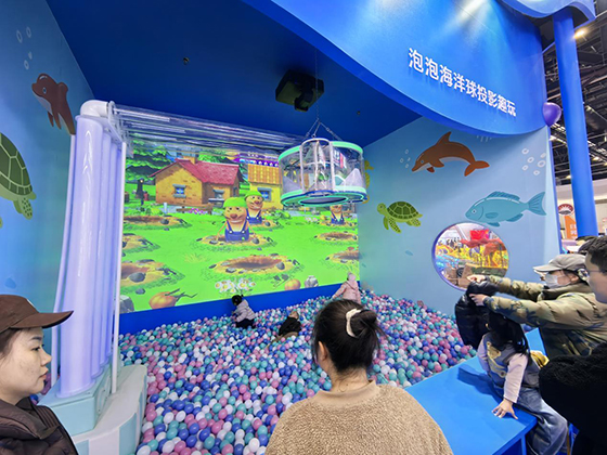在海洋球互动投影区域内,影像内容显著提升了儿童们的互动欲望与体验时长,“用海洋球攻击动态的影像画面”成为了数字海洋球池的创新玩法。