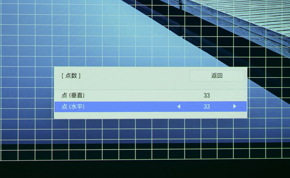 在点矫正模式中,最多可以支持33×33点的网格调试,每个点都可以调整角度,是个不规则表面的投影画面微调效果。