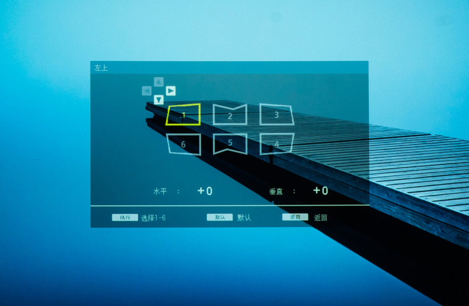 它支持6点及四角独立校正功能,无论是转角墙面还是柱状投影,都能通过遥控器轻松完成调节。
