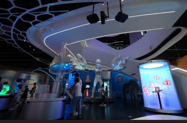 坐落于光明区的深圳科学技术馆以“数字文明”为展示主题,建筑灵感来自“大飞船”造型,融合了丰富的互动元素与灵活开放的空间布局,迅速晋升为深圳科技文化的新地标。自开馆以来,三个月内观众人数突破百万,成为深圳科普领域的热门“顶流”,同时也是行业创新实践的标杆。馆内共设有四大常设展厅,展项总数高达950个,在全国科技馆中名列前茅。其中,80%以上展项为创新互动类内容,大幅提升了观众的参与度和沉浸式体验。