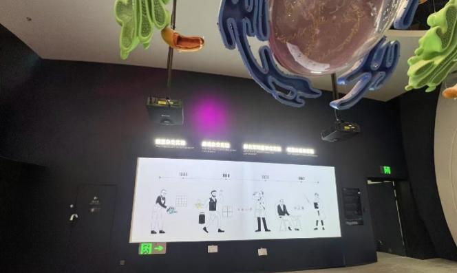 激光投影机,为“粒子起源”、“宠物定制”、“细胞”、“蛋白质结构”、“生命方舟”、“黑洞的奥秘”、“杂交水稻”、“时空之网”及“宇宙”等互动展项提供震撼生动的视觉呈现。