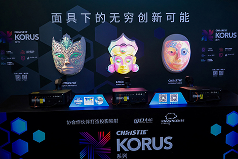 盛晓强先生谈到,科视此次展示的互动面具投影映射装置,精准捕捉了这一趋势。该装置融合了中、印、威尼斯多元戏曲文化,利用Korus系列投影机对复杂三维载体进行精准贴合。投影的核心优势在于大尺度空间与非标准载体的灵活适配,这是其他固定显示技术难以企及的。