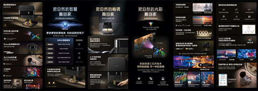 “三芯三色全彩引擎”,采用影院同源的三芯片技术,通过“三芯片+三色光源”架构,将红、绿、蓝三光源分别精准对齐3个LCD面板,相比传统3LCD技术的单色光源分光,能够有效降低光的损耗,从而提高投影画面的亮度表现;同时,三色光源的运用能够实现更广的色域,为投影画面带来更丰富的色彩表现。
