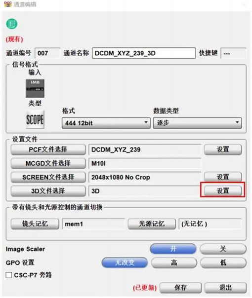 5、进入3D设置界面,将N:M设置成4:2(单机播放48帧3D);3D控制各项参数,参照不同3D设备品牌提供的要求进行设置。