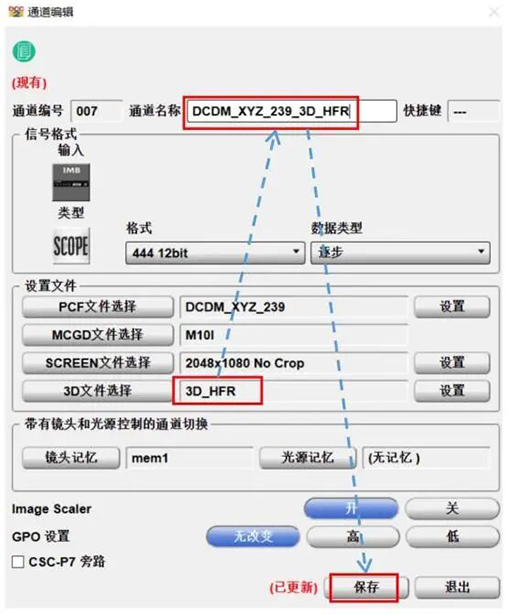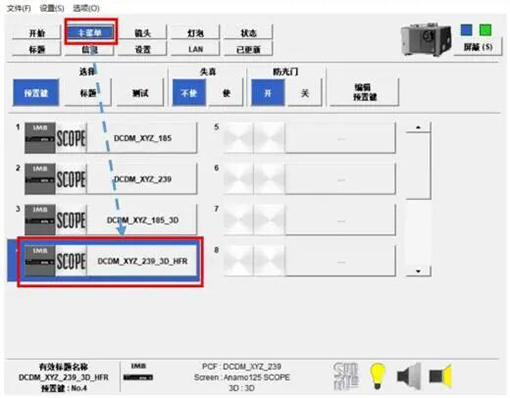 8、进入“主菜单”,选择高帧率新通道,测试放映。