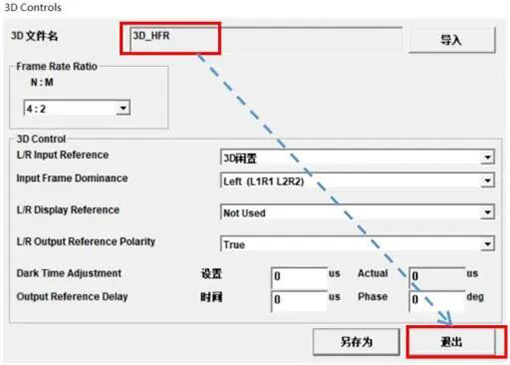 3、进入3D设置界面,将N:M设置成4:2(单机播放48帧3D);3D控制各项参数,参照不同3D设备品牌提供的要求进行设置。