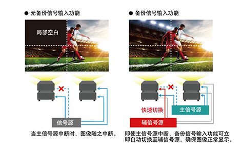 冗余的激光光学引擎(冗余电路)和备份信号功能带来强大的容错性,可在激光模块损坏或信号丢失情况下,保持画面输出,保障展演无“意外”,不负观众期待。