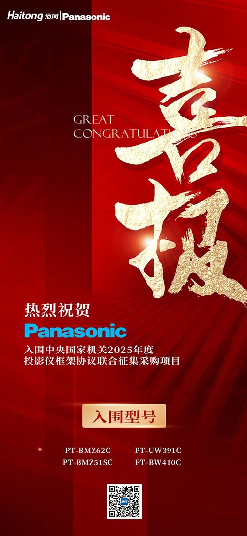 热烈祝贺Panasonic入围中央国家机关2025年度投影仪框架协议联合征集采购项目。入围型号:PT-BMZ62C、PT-BMZ51SC、PT-UW391C、PT-BW410C。