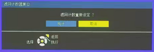 4) 选择【过滤网计数器复位】选项,点击执行选项后复位操作完成。