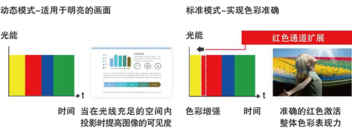 色彩增强系统是一种色彩优化技术,具有两种可选模式。动态模式可以平衡亮度和色彩,在明亮的环境中也能呈现清晰的图像。标准模式通过扩展红色通道输出来优化色彩再现,呈现更自然生动的红色表现。这对于艺术图像及其他色彩丰富内容的准确再现至关重要。