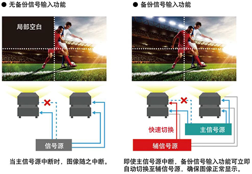 多驱动激光光学引擎(冗余电路)和备份信号输入功能带来强大的容错性,可在激光模块损坏或信号丢失情况下,保持画面输出,保障展演无“意外”,不负观众期待。