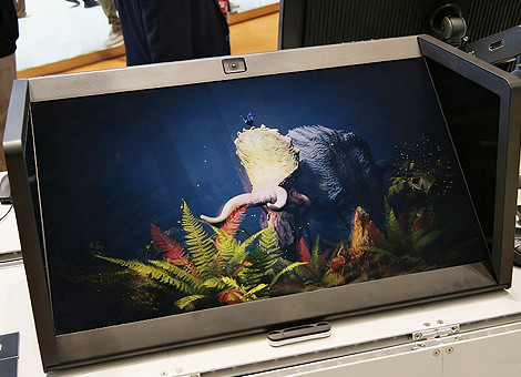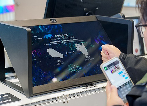 现场演示中,通过3D扫描恐龙玩具生成的数字恐龙,在仿真“盆景”景观中缓步走动,画面具有逼真的景深效果,草丛与恐龙的视角都会随着观众的目光角度而变化,立体感很强。另外,3D扫描蝴蝶标本生成的数字蝴蝶,在花丛中扇翅飞舞,栩栩如生。观众还可用手势交互变换花丛色彩。这一方案还可以将介绍动物的2D文字与3D动态影像同时显示,可谓是博物馆、展览馆等场所的展品数字化升级的高效、高交互的解决方案。