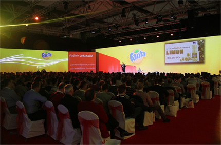 可口可乐希腊瓶装公司(简称“可口可乐HBC”)2014年启动会议已在塞尔维亚贝尔格莱德BelExpo中心举行。在活动中,全球可视化解决方案领导者巴可公司提供了强大的显示系统支持,多款巴可高亮度工程投影机齐上阵,为可口可乐公司打造了令人震撼的会议舞台背景。这项应用凭借新颖的视觉效果为活动锦上添花,向在场的700多名员工呈现了一个美妙的可口可乐世界。