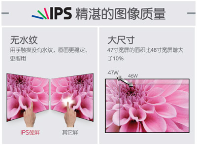 Switching),意思是“平面转换”。顾名思义,它改变了VA软屏垂直的分子排列,而使液晶分子呈横向水平运动。这样的分子结构,当遇到外界压力时,分子结构向下稍微下陷,但是整体分子还呈水平状;而VA软屏液晶的垂直排列状,则下陷厉害,呈倒八字形。可见,IPS硬屏液晶分子结构的坚固性和稳定性都远远优于VA软屏,基本保持原样不变。在直接触摸硬屏屏幕后,不会发生闪光和水纹现象,面板也更加耐磨损和防划伤。